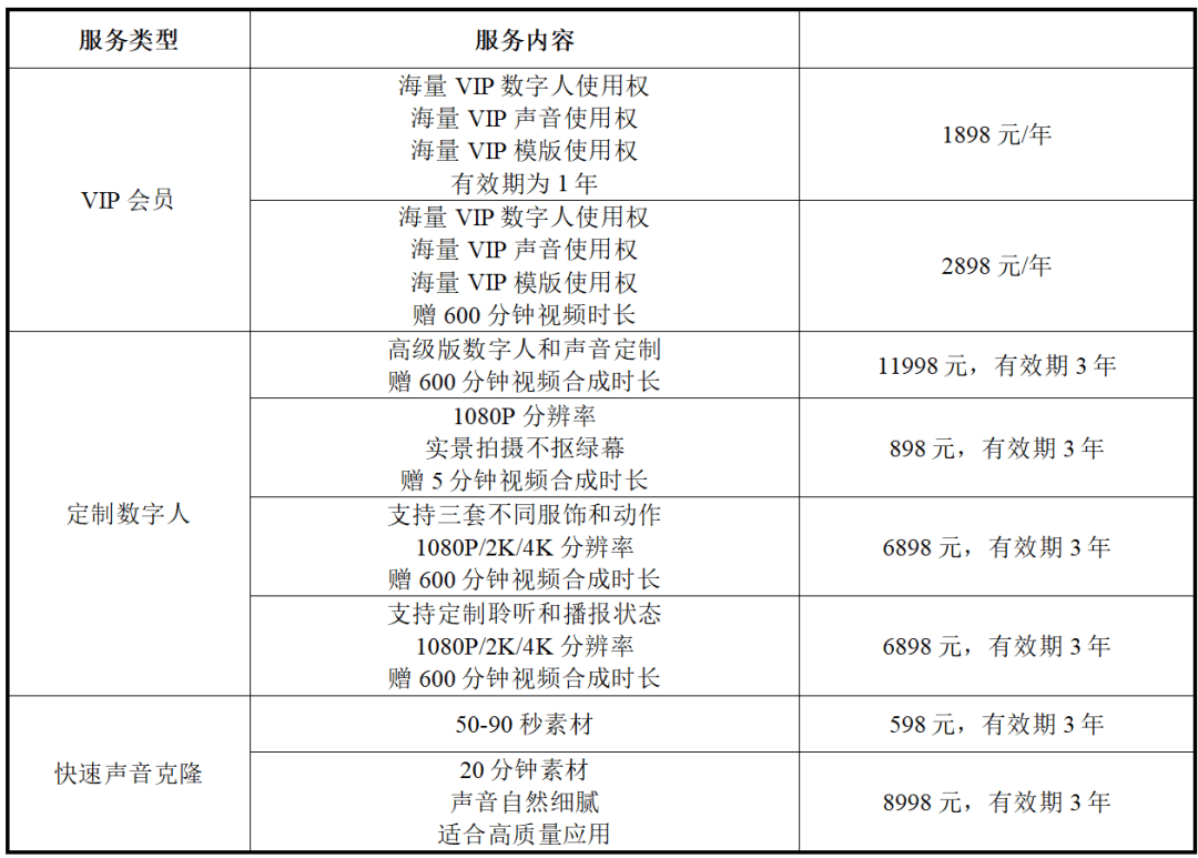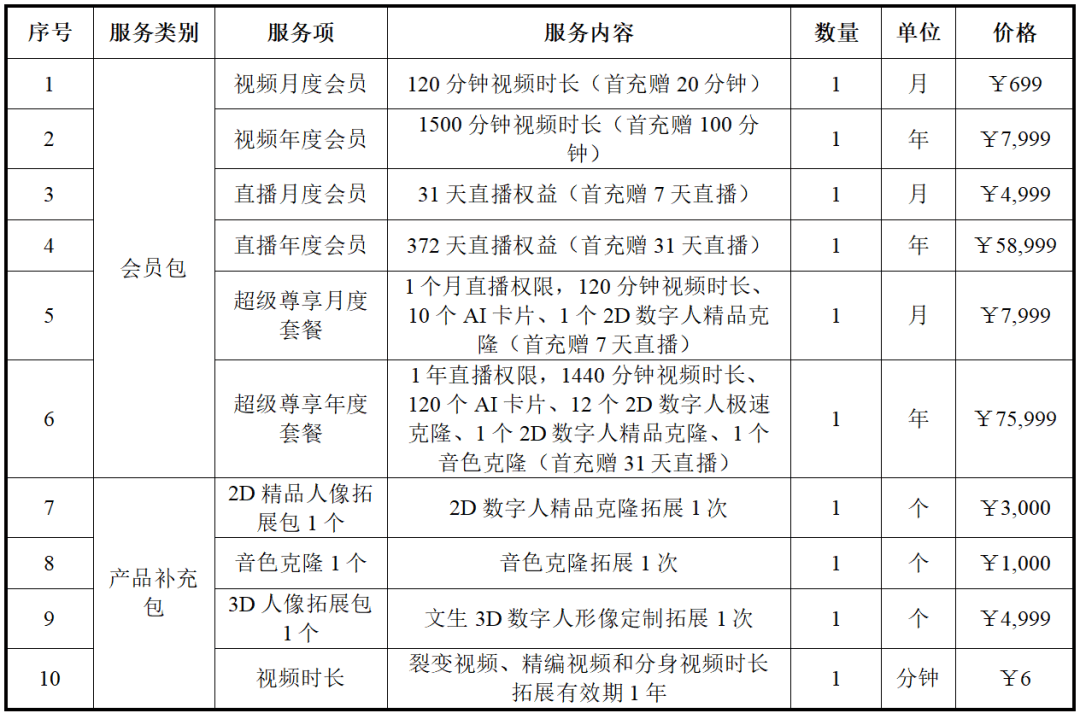收费功能包罗3D抽象定制、多模态交互、企业级曲播SaaS。