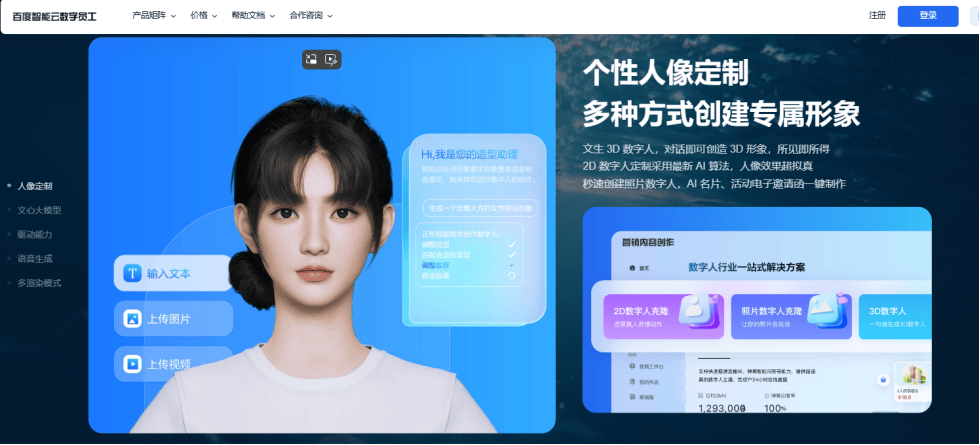 对应功能为照片数字人。阿里云数字人平台集成了天然言语处置、图形图像、语音等算法能力,能够搭配数智人的播报办事以及交互办事一同利用。