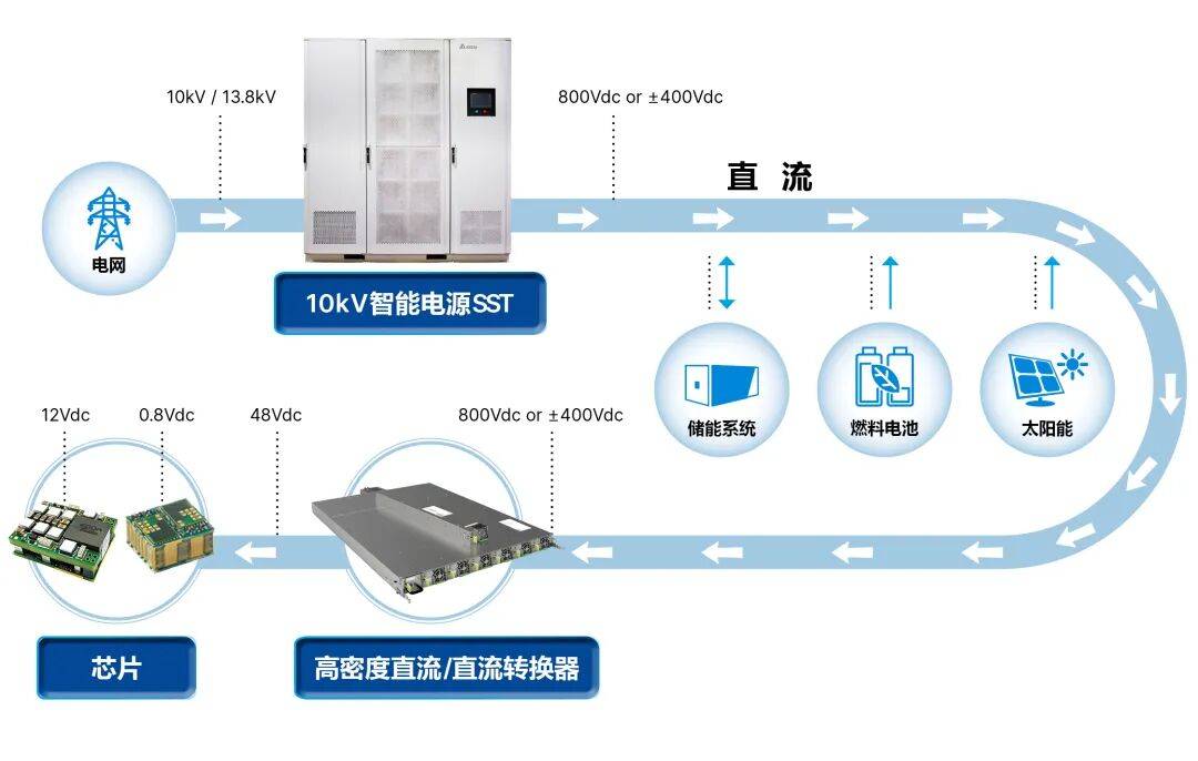 第三步终极方案操纵SST实现从电网10kV中压交换电到800V曲流的“一步到位”式转换。
